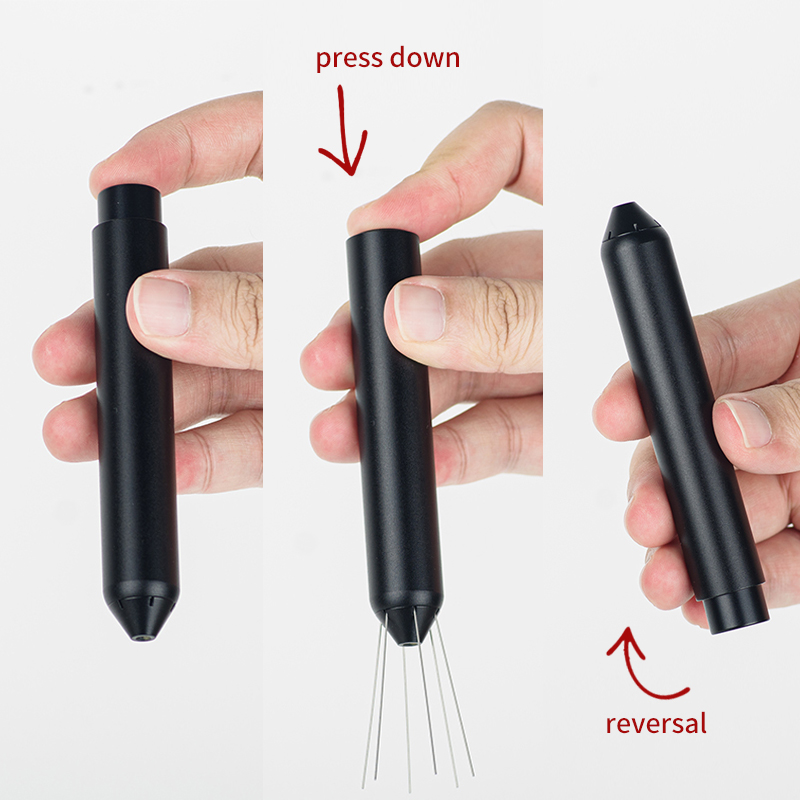 Elevate your coffee experience with the Flick WDT Tool. Engineered with retractable needles for enhanced safety, this espresso distribution tool guarantees a smooth and secure puck preparation.