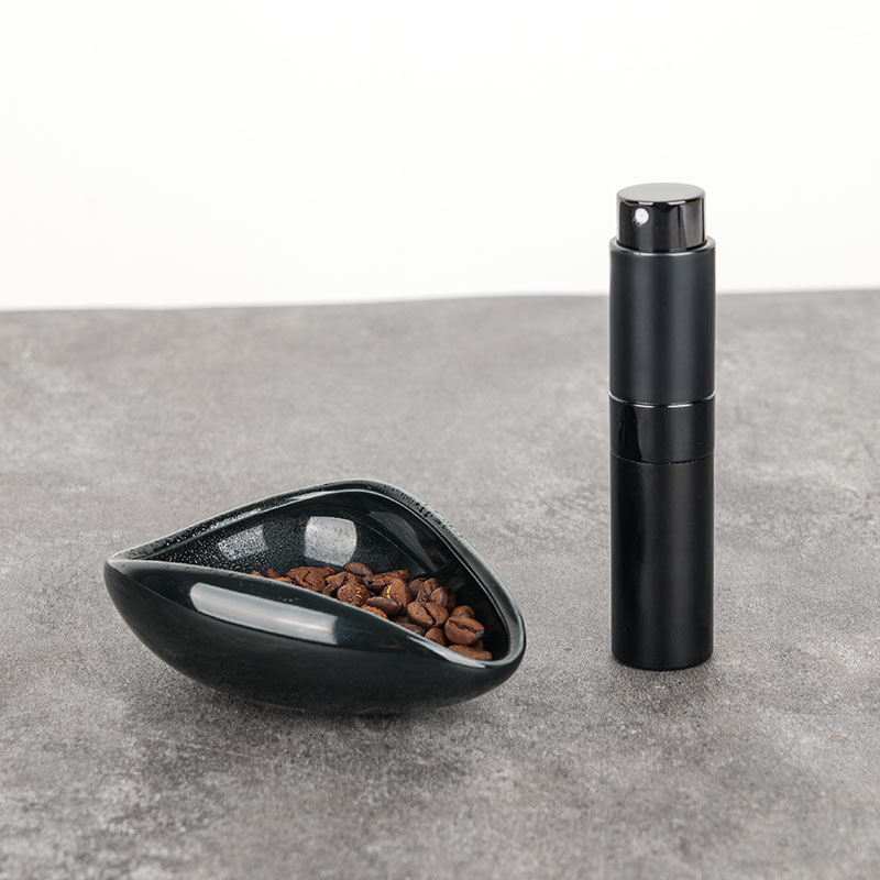 The set includes a ceramic bean tray and an 8ml sprayer, making it an innovative and unique espresso accessory. The ceramic bean tray is used for weighing and pouring the coffee beans and is very easy to apply.