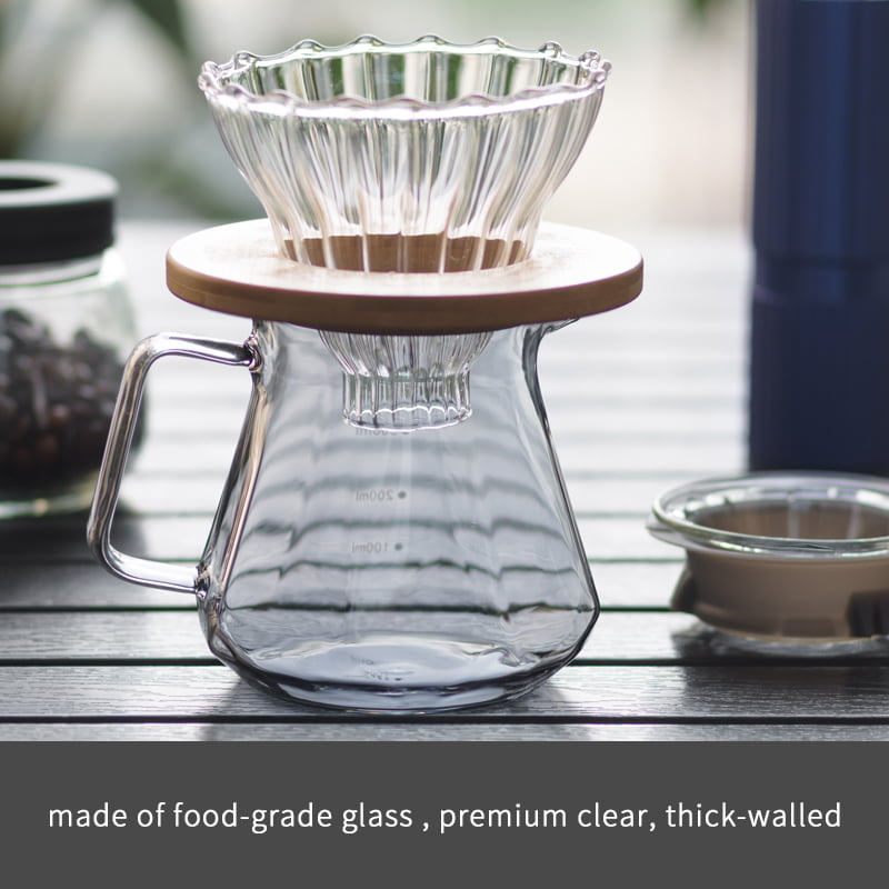 Compatible with glass coffee drippers, stainless steel drippers and ceramic drippers, this glass coffee maker is easy to use and makes it easy to enjoy your coffee every day.